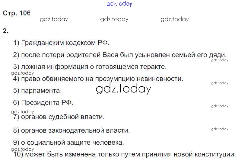 На страницах сайта gdz.today вы найдете учебный и вспомогательный материал, направленный на улучшения знаний школьной программы. ГДЗ - онлайн мир знаний Страницы (решение) 106 Рабочей тетради по Обществознанию для 9 класса Федорова Дрофа Вертикаль 2019