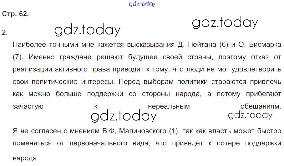 На страницах сайта gdz.today вы найдете учебный и вспомогательный материал, направленный на улучшения знаний школьной программы. ГДЗ - онлайн мир знаний Страницы (решение) 62 Рабочей тетради по Обществознанию для 9 класса Федорова Дрофа Вертикаль 2019