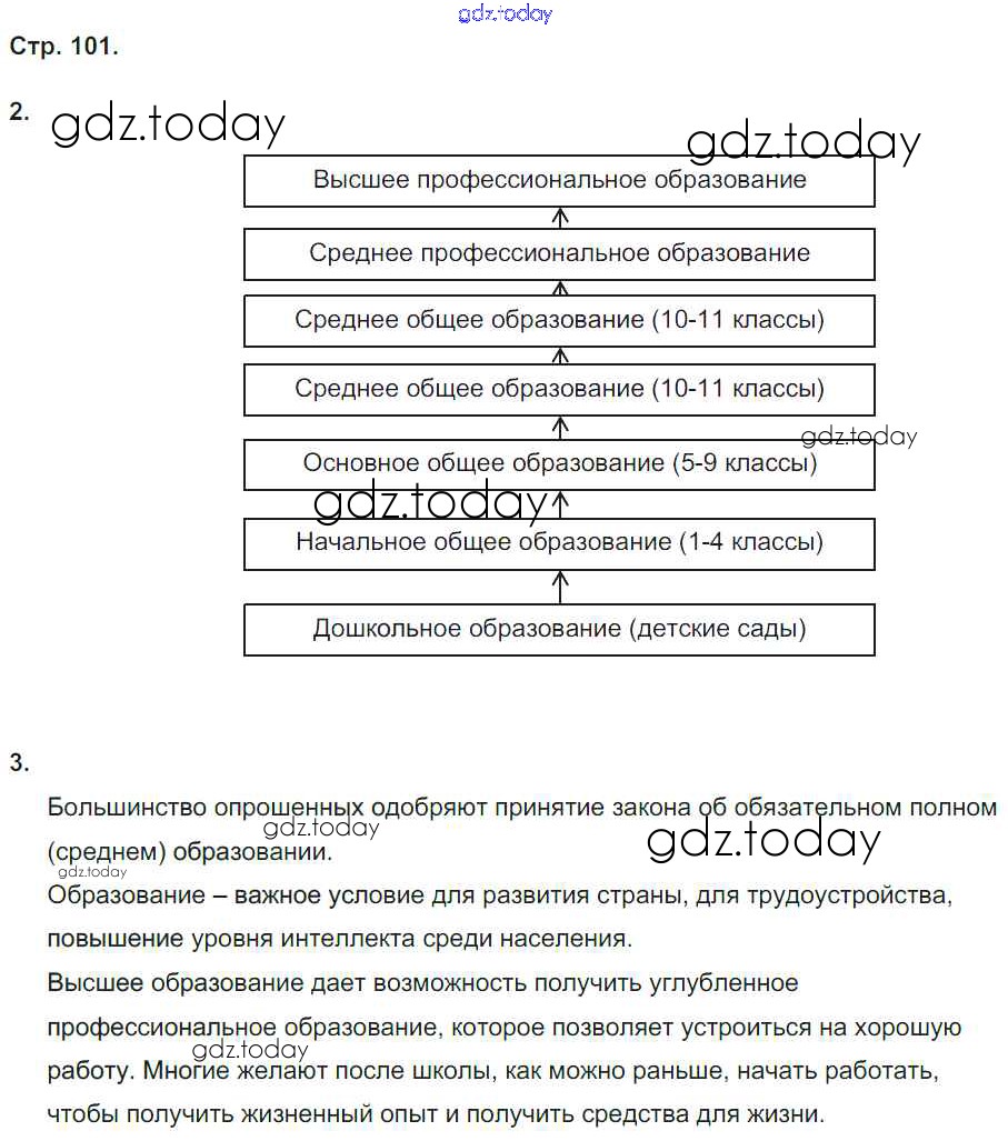 На страницах сайта gdz.today вы найдете учебный и вспомогательный материал, направленный на улучшения знаний школьной программы. ГДЗ - онлайн мир знаний Страницы (решение) 101 Рабочей тетради по Обществознанию для 9 класса Котова, Лискова Просвещение УМК 2016