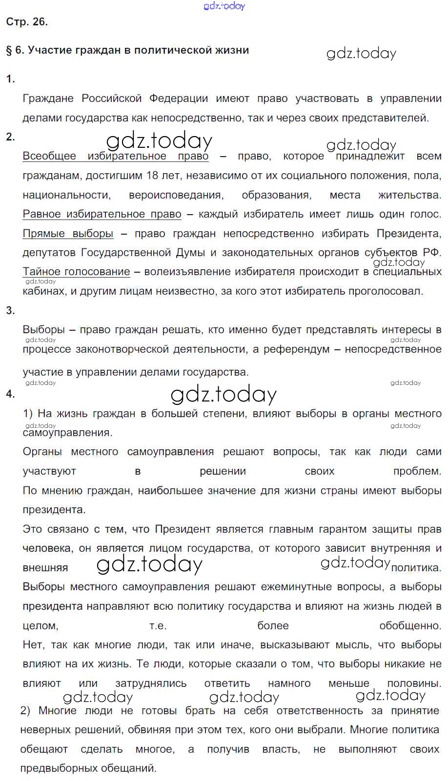 На страницах сайта gdz.today вы найдете учебный и вспомогательный материал, направленный на улучшения знаний школьной программы. ГДЗ - онлайн мир знаний Страницы (решение) 26 Рабочей тетради по Обществознанию для 9 класса Котова, Лискова Просвещение УМК 2016