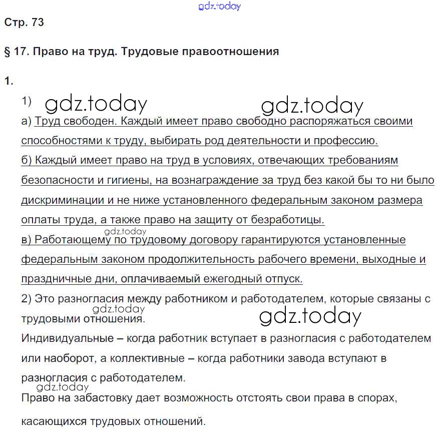 Ответы к Страницы (решение) 73 Рабочей тетради по Обществознанию для 9 класса Котова, Лискова Просвещение УМК 2016