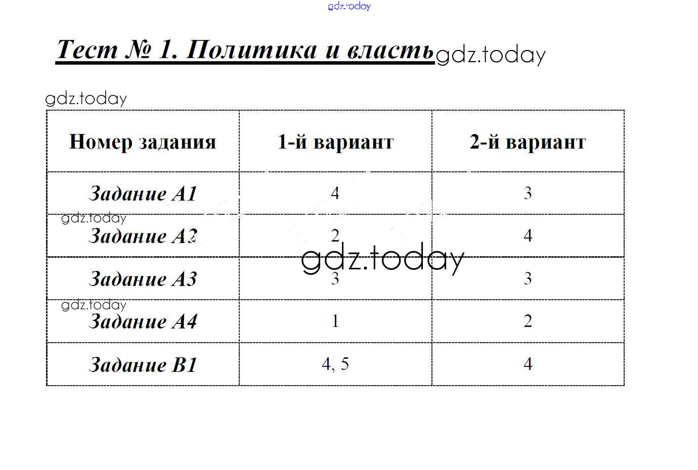 На страницах сайта gdz.today вы найдете учебный и вспомогательный материал, направленный на улучшения знаний школьной программы. ГДЗ - онлайн мир знаний Решение к тестам Тест 1. Политика и власть Контрольно-измерительным материалам (КИМ) по Обществознанию для 9 класса Поздеев ВАКО 2018