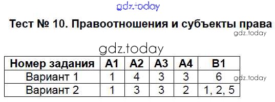 На страницах сайта gdz.today вы найдете учебный и вспомогательный материал, направленный на улучшения знаний школьной программы. ГДЗ - онлайн мир знаний Решение к тестам Тест 10. Правоотношения и субъекты права Контрольно-измерительным материалам (КИМ) по Обществознанию для 9 класса Поздеев ВАКО 2018