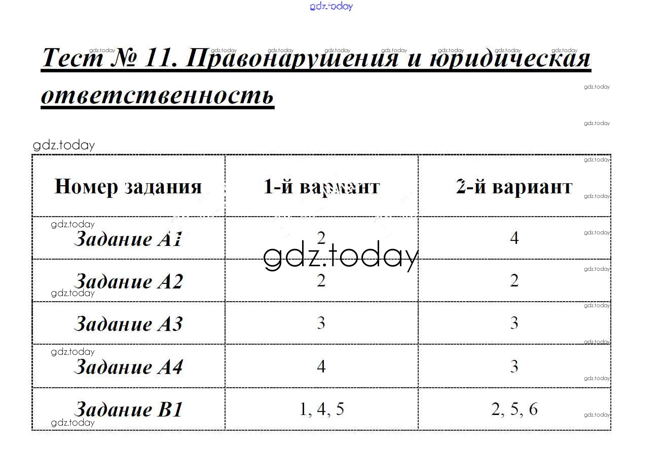 На страницах сайта gdz.today вы найдете учебный и вспомогательный материал, направленный на улучшения знаний школьной программы. ГДЗ - онлайн мир знаний Решение к тестам Тест 11. Правонарушения и юридическая ответственность Контрольно-измерительным материалам (КИМ) по Обществознанию для 9 класса Поздеев ВАКО 2018