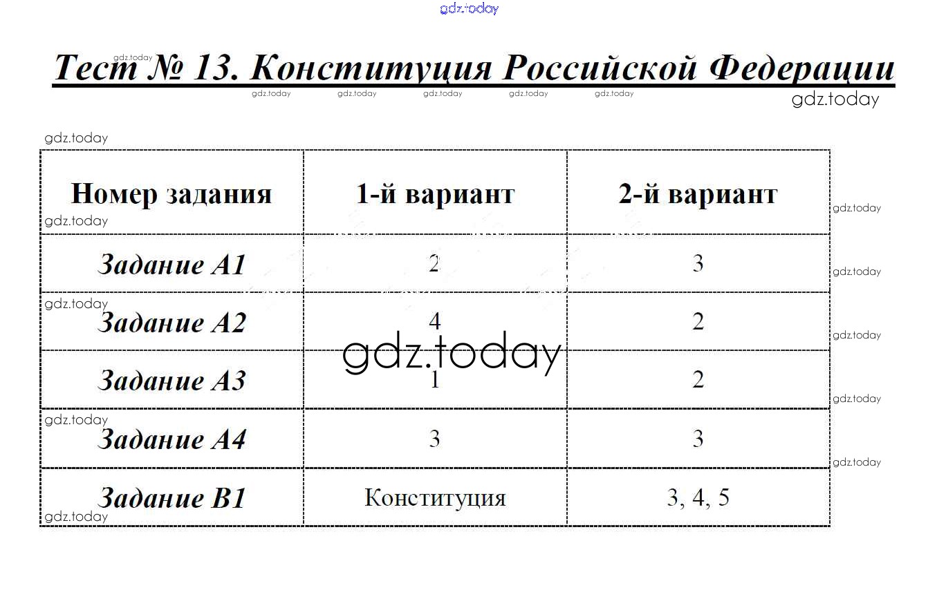 На страницах сайта gdz.today вы найдете учебный и вспомогательный материал, направленный на улучшения знаний школьной программы. ГДЗ - онлайн мир знаний Решение к тестам Тест 13. Конституция Российской Федерации. Основы конституционного строя РФ Контрольно-измерительным материалам (КИМ) по Обществознанию для 9 класса Поздеев ВАКО 2018