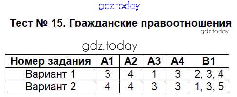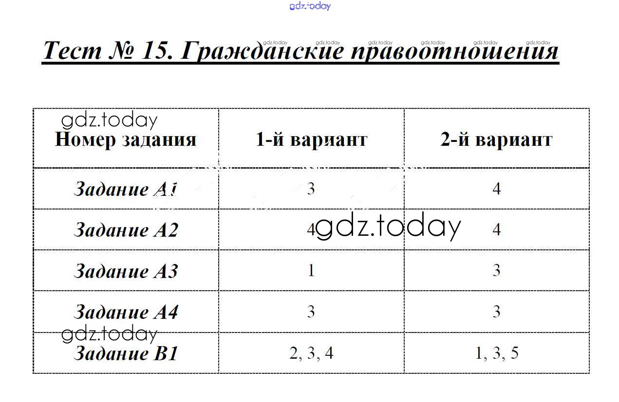 На страницах сайта gdz.today вы найдете учебный и вспомогательный материал, направленный на улучшения знаний школьной программы. ГДЗ - онлайн мир знаний Решение к тестам Тест 15. Гражданские правоотношения Контрольно-измерительным материалам (КИМ) по Обществознанию для 9 класса Поздеев ВАКО 2018