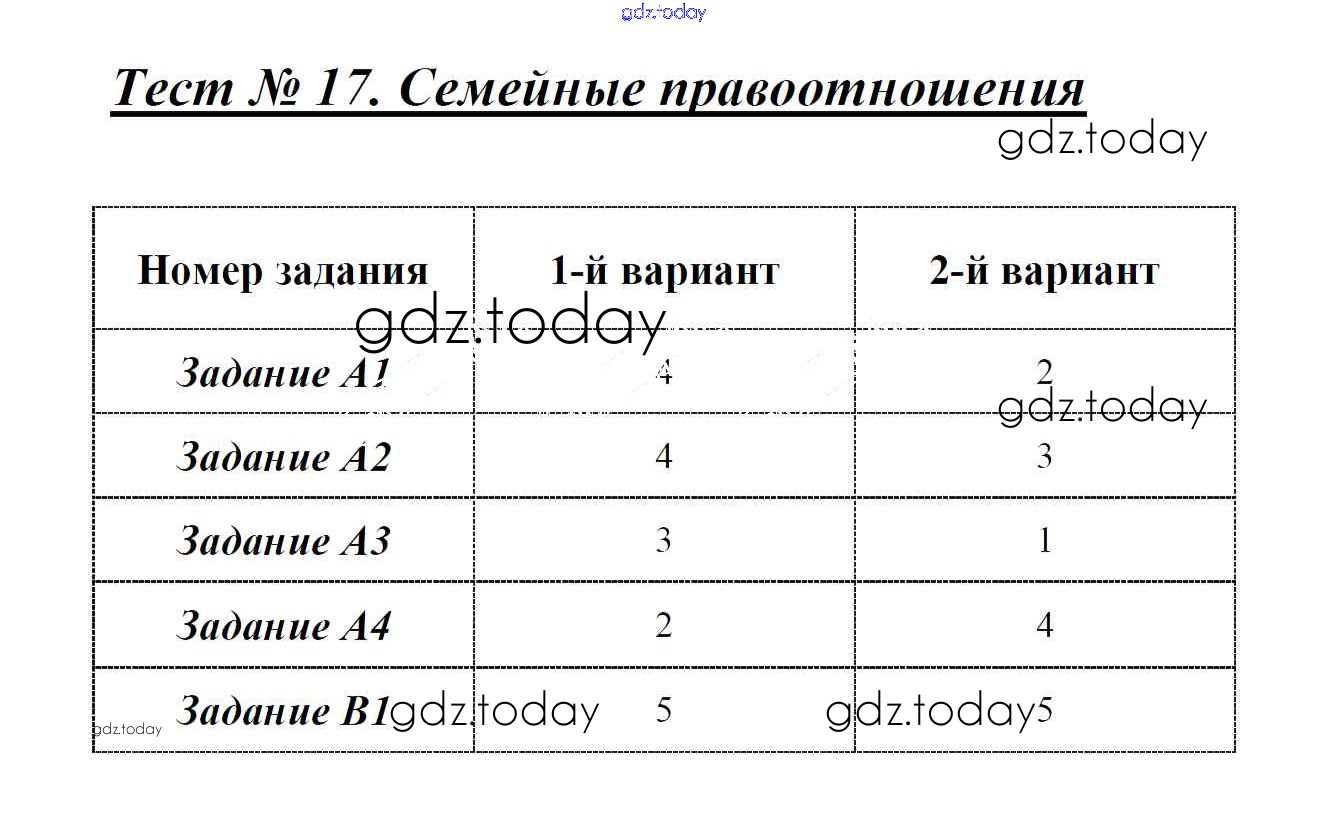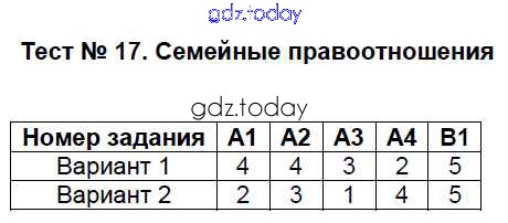 На страницах сайта gdz.today вы найдете учебный и вспомогательный материал, направленный на улучшения знаний школьной программы. ГДЗ - онлайн мир знаний Решение к тестам Тест 17. Семейные правоотношения Контрольно-измерительным материалам (КИМ) по Обществознанию для 9 класса Поздеев ВАКО 2018