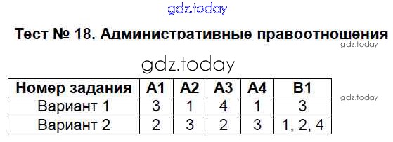 Ответы к Решение к тестам Тест 18. Административные правоотношения Контрольно-измерительным материалам (КИМ) по Обществознанию для 9 класса Поздеев ВАКО 2018