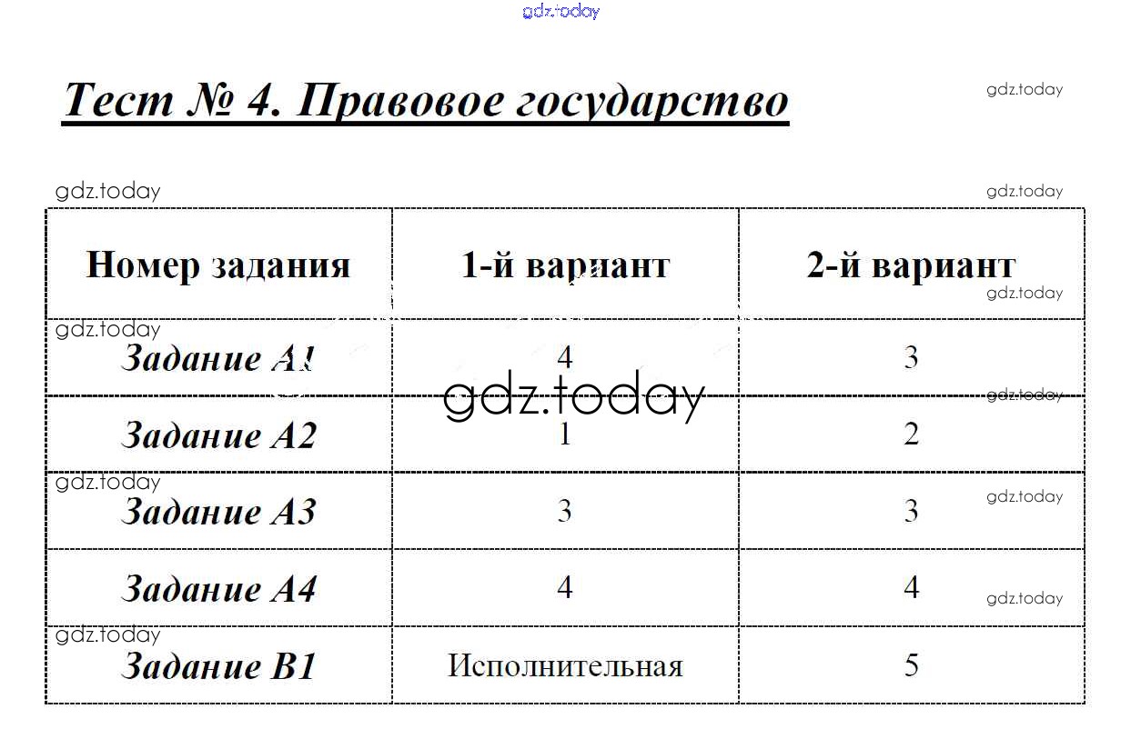 На страницах сайта gdz.today вы найдете учебный и вспомогательный материал, направленный на улучшения знаний школьной программы. ГДЗ - онлайн мир знаний Решение к тестам Тест 4. Правовое государство Контрольно-измерительным материалам (КИМ) по Обществознанию для 9 класса Поздеев ВАКО 2018
