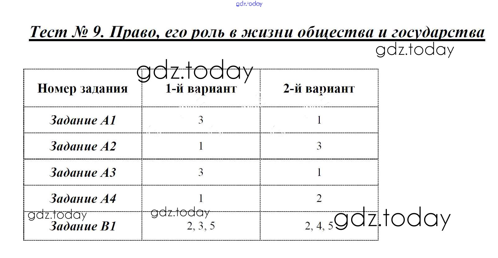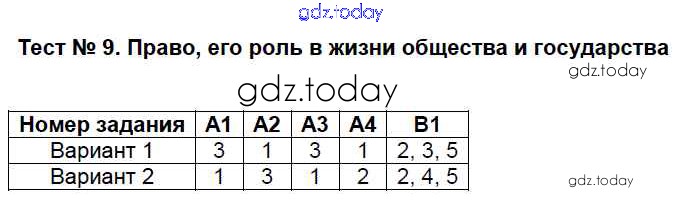 На страницах сайта gdz.today вы найдете учебный и вспомогательный материал, направленный на улучшения знаний школьной программы. ГДЗ - онлайн мир знаний Решение к тестам Тест 9. Право, его роль в жизни общества и государства Контрольно-измерительным материалам (КИМ) по Обществознанию для 9 класса Поздеев ВАКО 2018