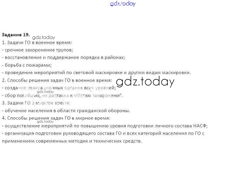 На страницах сайта gdz.today вы найдете учебный и вспомогательный материал, направленный на улучшения знаний школьной программы. ГДЗ - онлайн мир знаний Решение к главе 2. Организация защиты населения и территорий от чрезвычайных ситуаций природного и техногенного характера 19 Рабочей тетради по ОБЖ для 9 класса Подолян Дрофа 2018