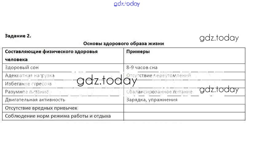 На страницах сайта gdz.today вы найдете учебный и вспомогательный материал, направленный на улучшения знаний школьной программы. ГДЗ - онлайн мир знаний Решение к главе 4. Основы формирования здорового образа жизни 2 Рабочей тетради по ОБЖ для 9 класса Подолян Дрофа 2018
