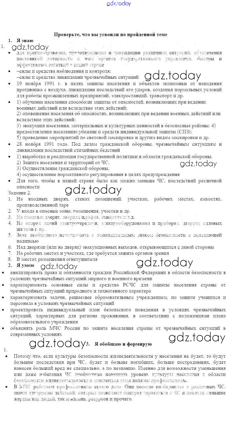 На страницах сайта gdz.today вы найдете учебный и вспомогательный материал, направленный на улучшения знаний школьной программы. ГДЗ - онлайн мир знаний Решение к главе 4 Проверьте свои знания Рабочей тетради по ОБЖ для 9 класса Смирнов, Хренников Просвещение 2018