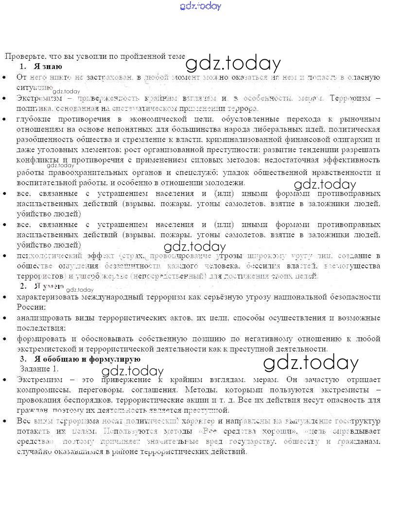 На страницах сайта gdz.today вы найдете учебный и вспомогательный материал, направленный на улучшения знаний школьной программы. ГДЗ - онлайн мир знаний Решение к главе 6 Проверьте свои знания Рабочей тетради по ОБЖ для 9 класса Смирнов, Хренников Просвещение 2018