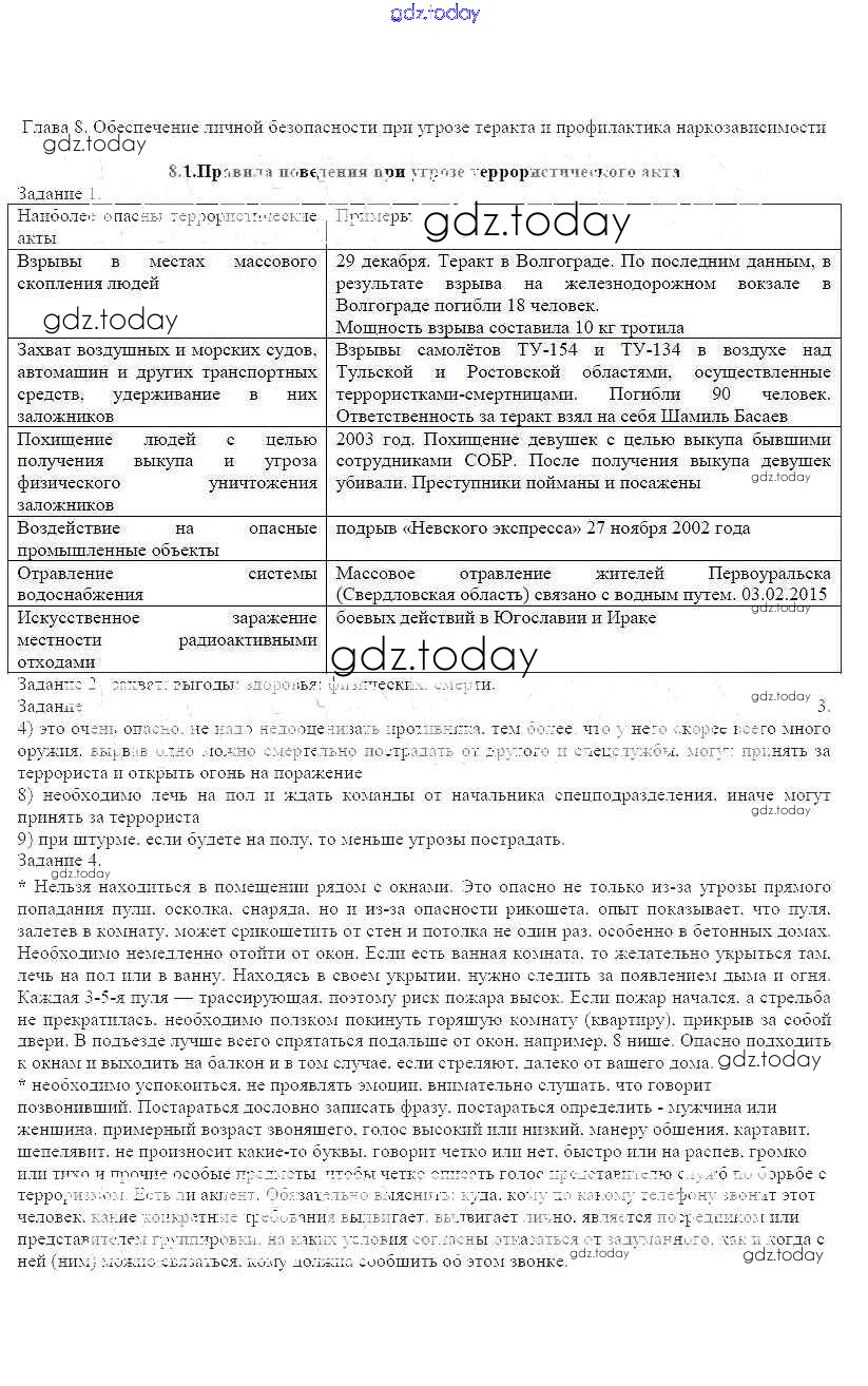 Ответы к Решение к главе 8 8.1 Рабочей тетради по ОБЖ для 9 класса Смирнов, Хренников Просвещение 2018