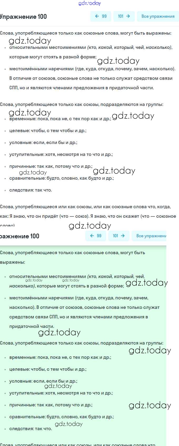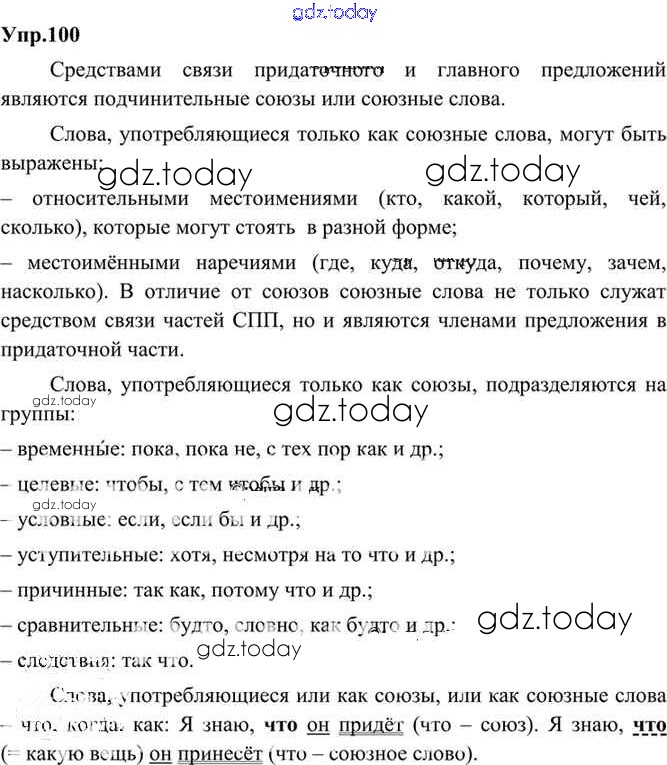 На страницах сайта gdz.today вы найдете учебный и вспомогательный материал, направленный на улучшения знаний школьной программы. ГДЗ - онлайн мир знаний Решение. Упражнения 100 Учебнику по Русскому языку для 9 класса Бархударов, Крючков Просвещение, Просвещение 2011, 2019