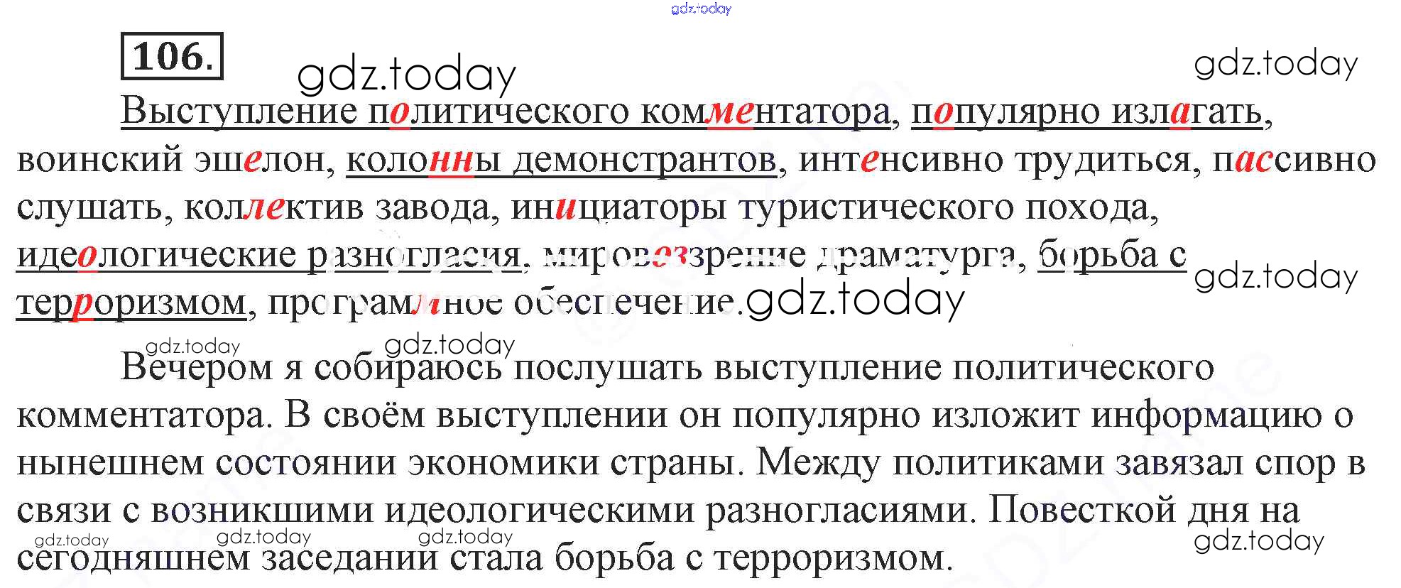 На страницах сайта gdz.today вы найдете учебный и вспомогательный материал, направленный на улучшения знаний школьной программы. ГДЗ - онлайн мир знаний Решение. Упражнения 106 Учебнику по Русскому языку для 9 класса Бархударов, Крючков Просвещение, Просвещение 2011, 2019