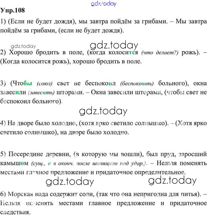 На страницах сайта gdz.today вы найдете учебный и вспомогательный материал, направленный на улучшения знаний школьной программы. ГДЗ - онлайн мир знаний Решение. Упражнения 108 Учебнику по Русскому языку для 9 класса Бархударов, Крючков Просвещение, Просвещение 2011, 2019
