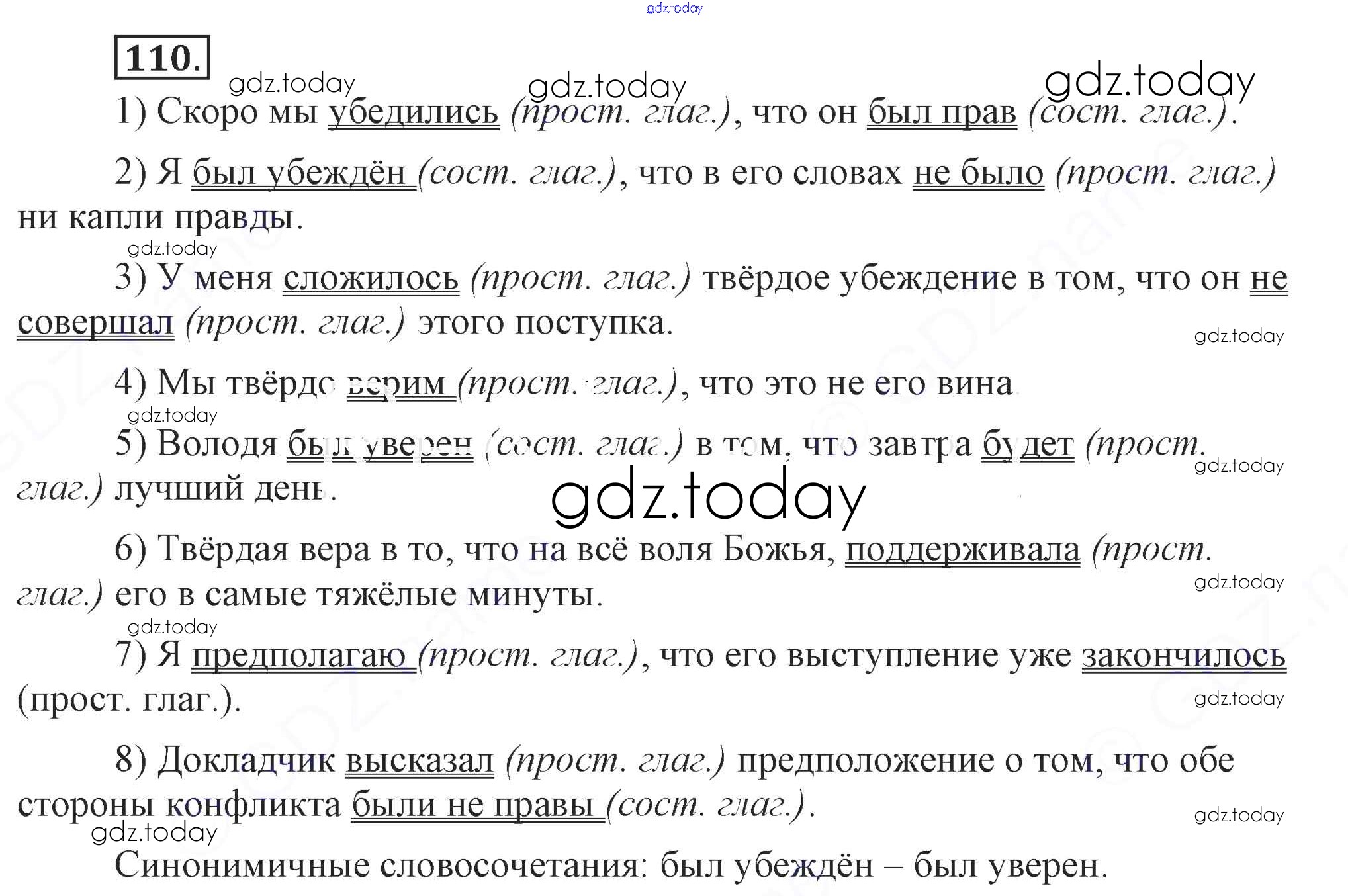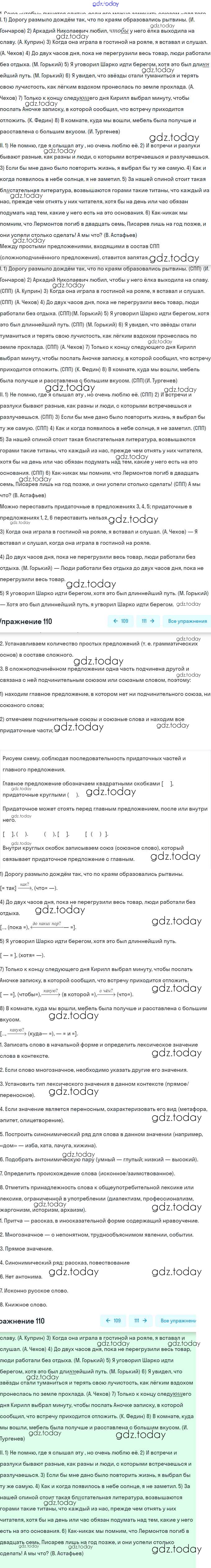 На страницах сайта gdz.today вы найдете учебный и вспомогательный материал, направленный на улучшения знаний школьной программы. ГДЗ - онлайн мир знаний Решение. Упражнения 110 Учебнику по Русскому языку для 9 класса Бархударов, Крючков Просвещение, Просвещение 2011, 2019