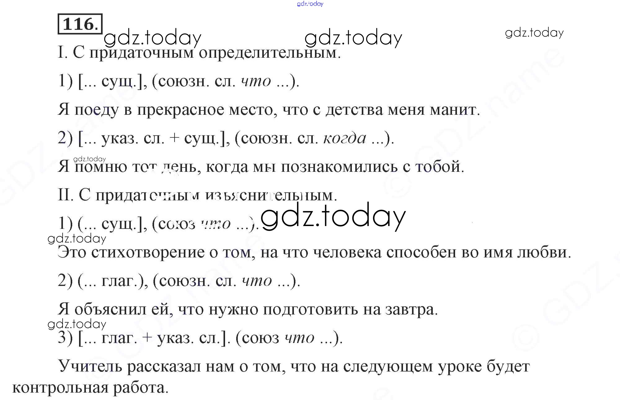 На страницах сайта gdz.today вы найдете учебный и вспомогательный материал, направленный на улучшения знаний школьной программы. ГДЗ - онлайн мир знаний Решение. Упражнения 116 Учебнику по Русскому языку для 9 класса Бархударов, Крючков Просвещение, Просвещение 2011, 2019