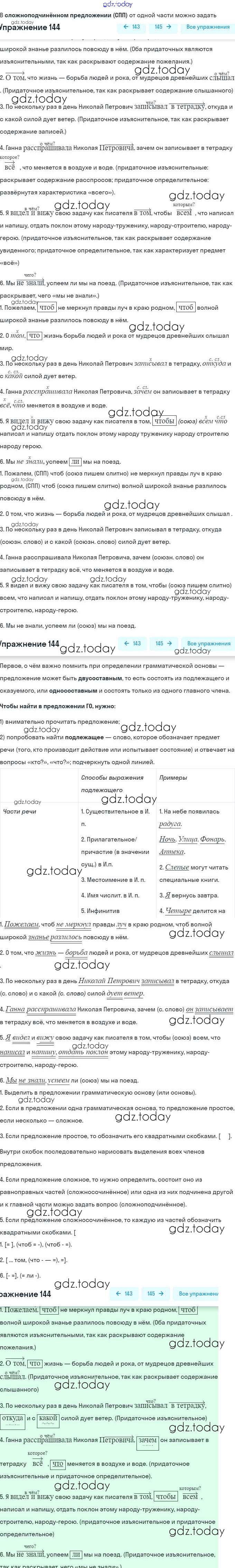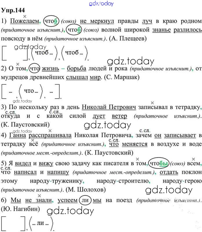 На страницах сайта gdz.today вы найдете учебный и вспомогательный материал, направленный на улучшения знаний школьной программы. ГДЗ - онлайн мир знаний Решение. Упражнения 144 Учебнику по Русскому языку для 9 класса Бархударов, Крючков Просвещение, Просвещение 2011, 2019