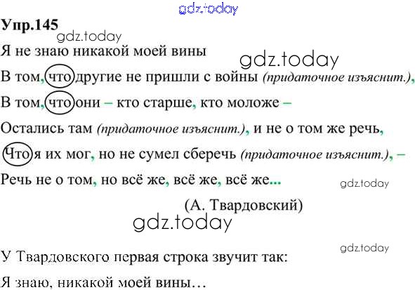 На страницах сайта gdz.today вы найдете учебный и вспомогательный материал, направленный на улучшения знаний школьной программы. ГДЗ - онлайн мир знаний Решение. Упражнения 145 Учебнику по Русскому языку для 9 класса Бархударов, Крючков Просвещение, Просвещение 2011, 2019