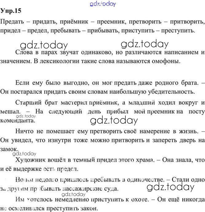 На страницах сайта gdz.today вы найдете учебный и вспомогательный материал, направленный на улучшения знаний школьной программы. ГДЗ - онлайн мир знаний Решение. Упражнения 15 Учебнику по Русскому языку для 9 класса Бархударов, Крючков Просвещение, Просвещение 2011, 2019