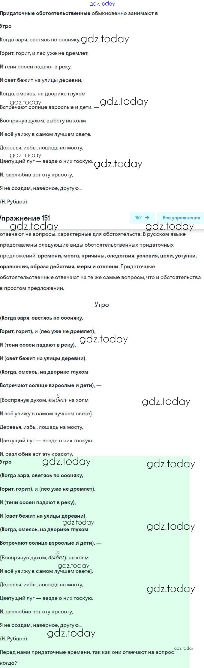 На страницах сайта gdz.today вы найдете учебный и вспомогательный материал, направленный на улучшения знаний школьной программы. ГДЗ - онлайн мир знаний Решение. Упражнения 151 Учебнику по Русскому языку для 9 класса Бархударов, Крючков Просвещение, Просвещение 2011, 2019