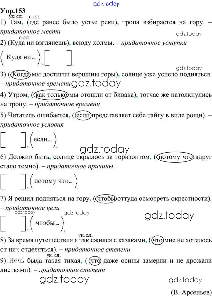 На страницах сайта gdz.today вы найдете учебный и вспомогательный материал, направленный на улучшения знаний школьной программы. ГДЗ - онлайн мир знаний Решение. Упражнения 153 Учебнику по Русскому языку для 9 класса Бархударов, Крючков Просвещение, Просвещение 2011, 2019