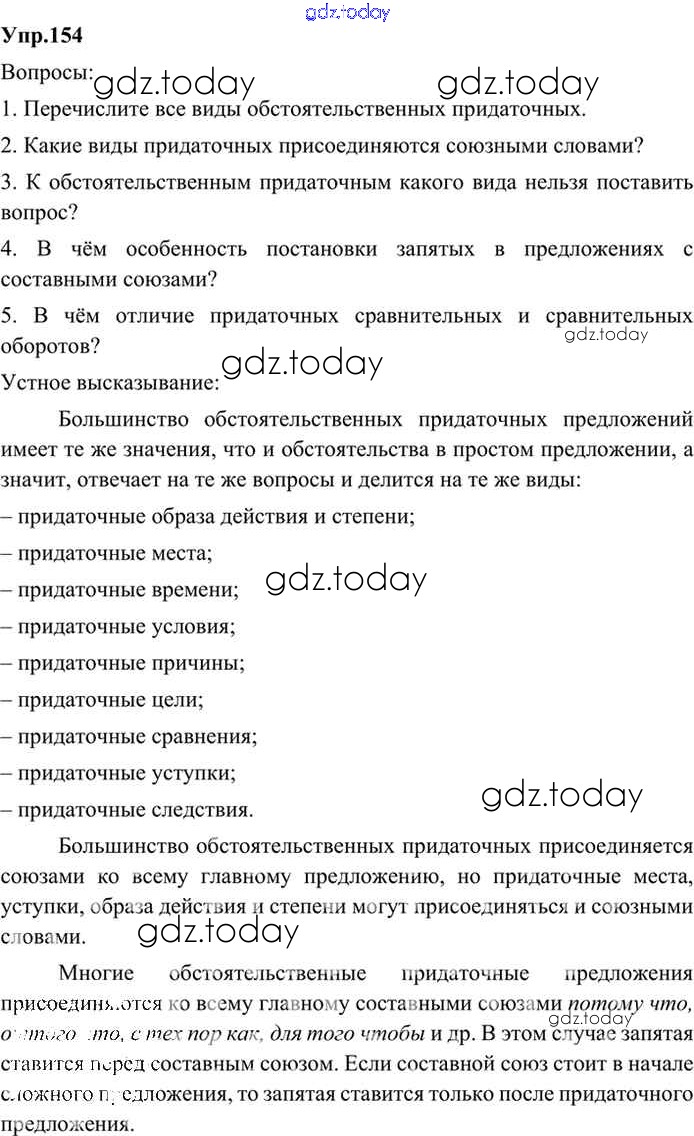 На страницах сайта gdz.today вы найдете учебный и вспомогательный материал, направленный на улучшения знаний школьной программы. ГДЗ - онлайн мир знаний Решение. Упражнения 154 Учебнику по Русскому языку для 9 класса Бархударов, Крючков Просвещение, Просвещение 2011, 2019