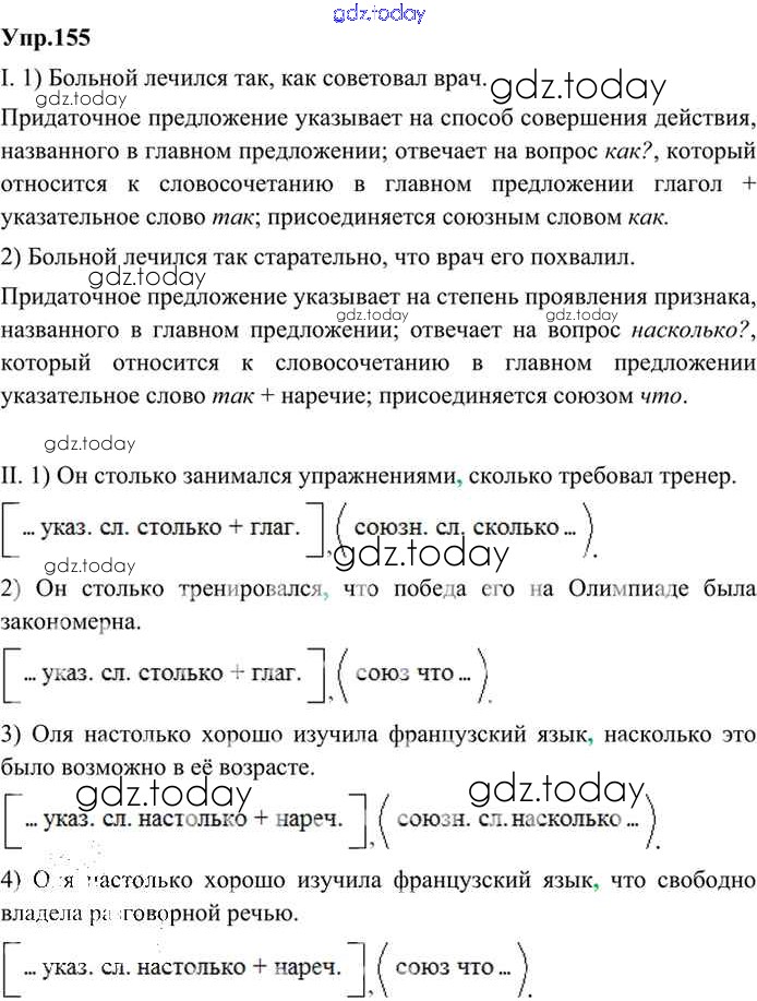 На страницах сайта gdz.today вы найдете учебный и вспомогательный материал, направленный на улучшения знаний школьной программы. ГДЗ - онлайн мир знаний Решение. Упражнения 155 Учебнику по Русскому языку для 9 класса Бархударов, Крючков Просвещение, Просвещение 2011, 2019