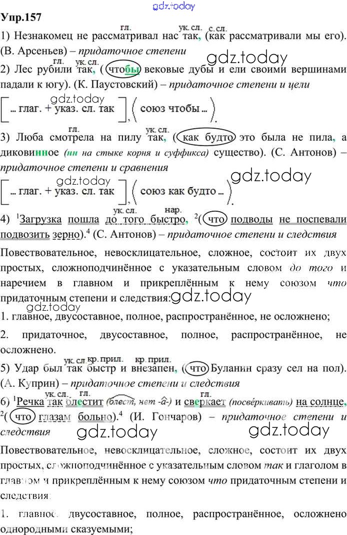 На страницах сайта gdz.today вы найдете учебный и вспомогательный материал, направленный на улучшения знаний школьной программы. ГДЗ - онлайн мир знаний Решение. Упражнения 157 Учебнику по Русскому языку для 9 класса Бархударов, Крючков Просвещение, Просвещение 2011, 2019