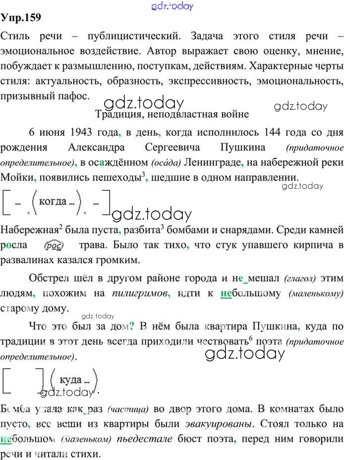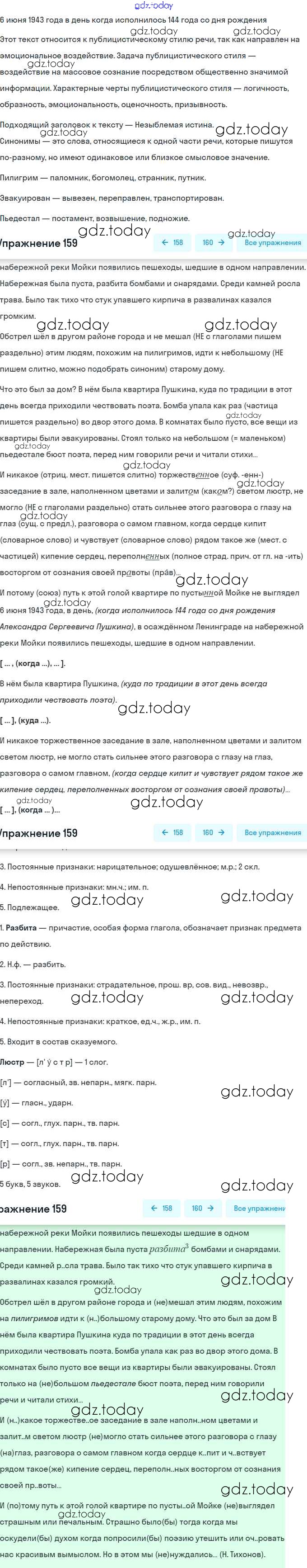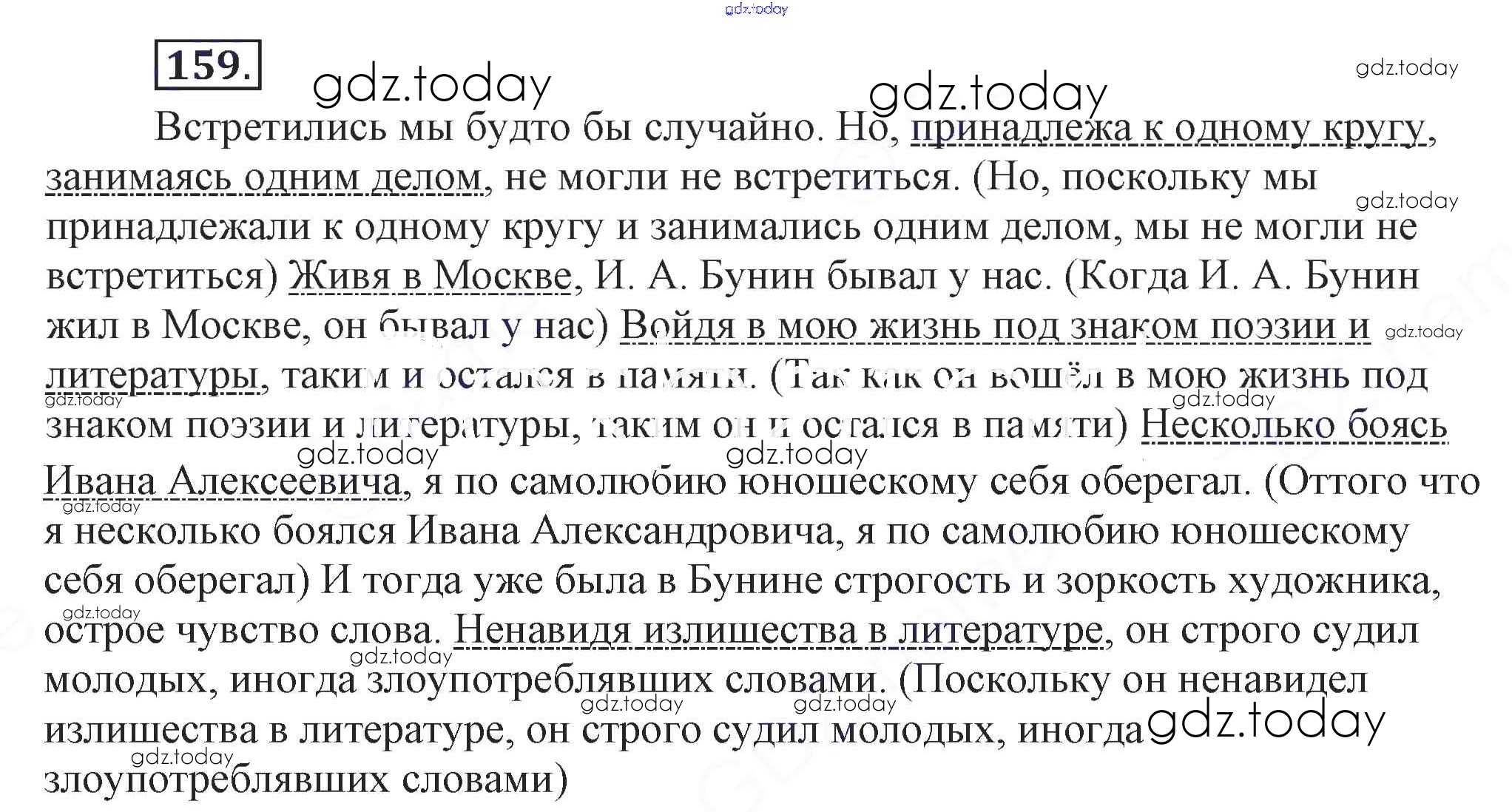 На страницах сайта gdz.today вы найдете учебный и вспомогательный материал, направленный на улучшения знаний школьной программы. ГДЗ - онлайн мир знаний Решение. Упражнения 159 Учебнику по Русскому языку для 9 класса Бархударов, Крючков Просвещение, Просвещение 2011, 2019