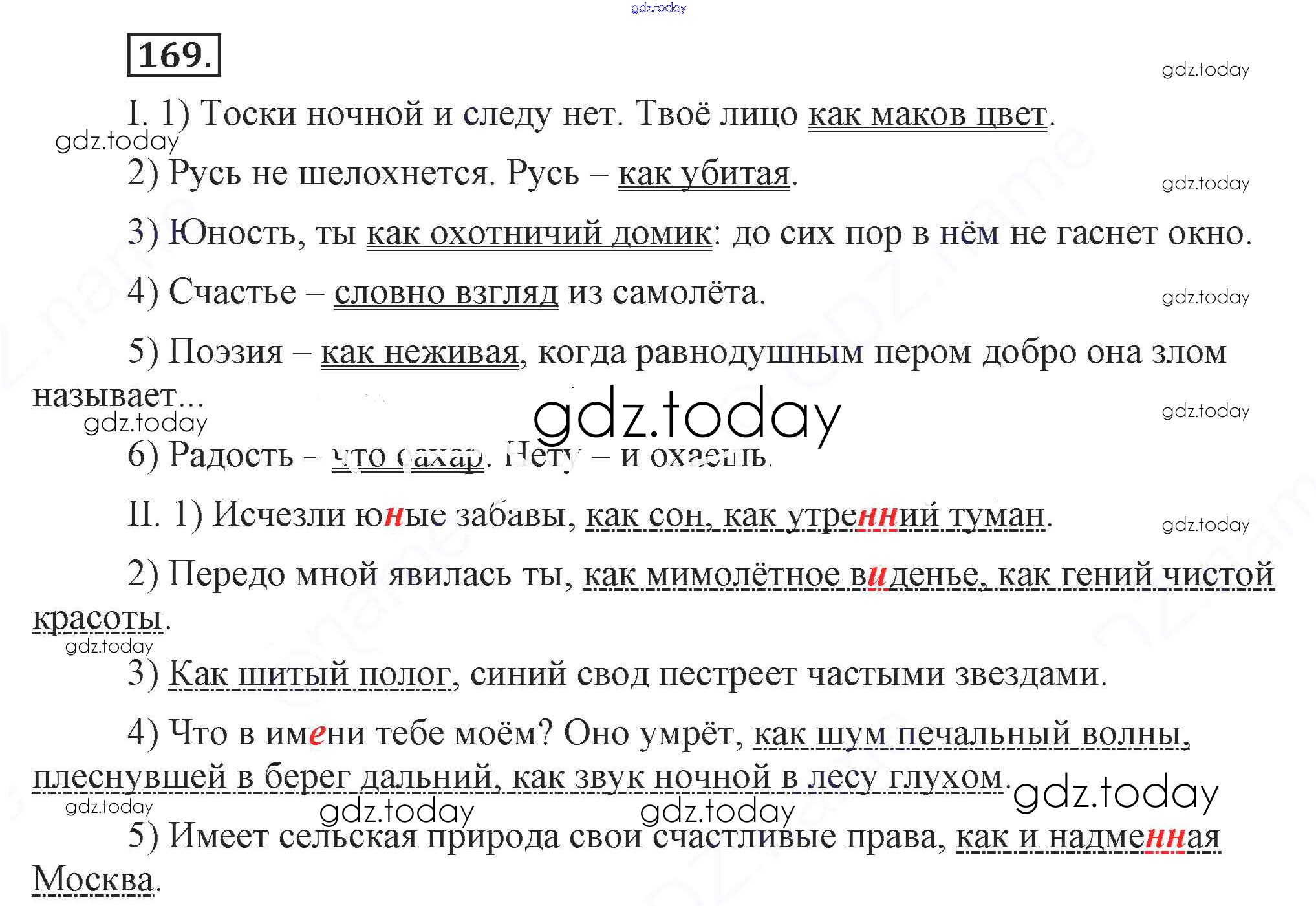 На страницах сайта gdz.today вы найдете учебный и вспомогательный материал, направленный на улучшения знаний школьной программы. ГДЗ - онлайн мир знаний Решение. Упражнения 169 Учебнику по Русскому языку для 9 класса Бархударов, Крючков Просвещение, Просвещение 2011, 2019