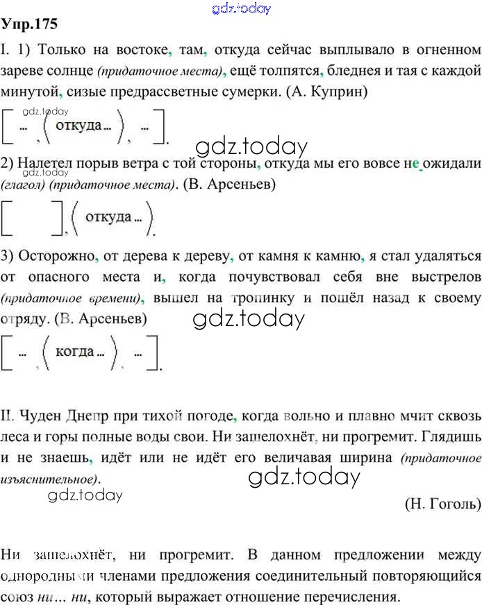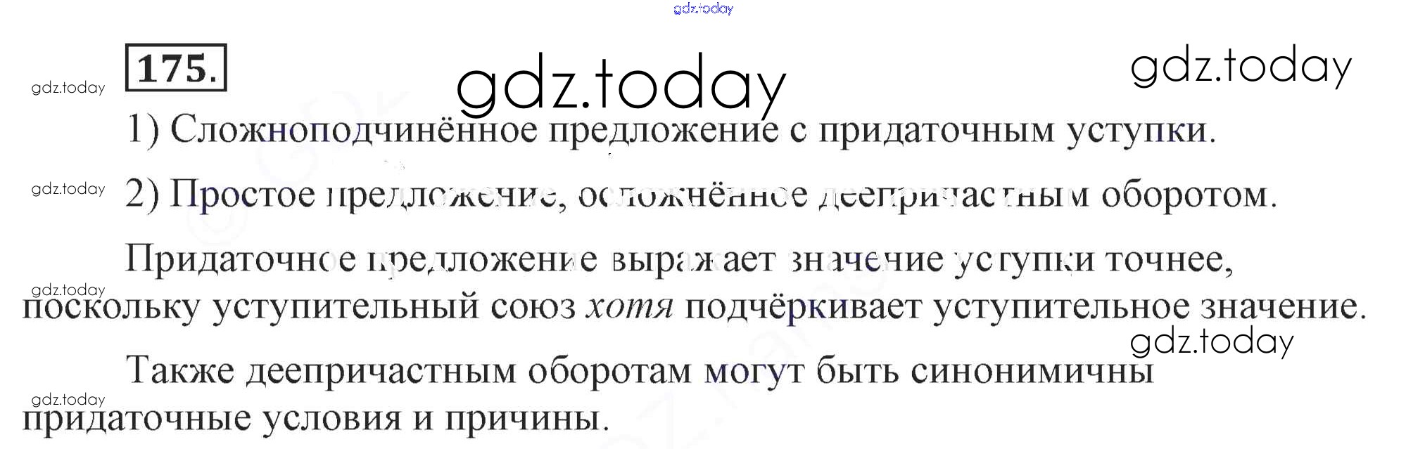 На страницах сайта gdz.today вы найдете учебный и вспомогательный материал, направленный на улучшения знаний школьной программы. ГДЗ - онлайн мир знаний Решение. Упражнения 175 Учебнику по Русскому языку для 9 класса Бархударов, Крючков Просвещение, Просвещение 2011, 2019