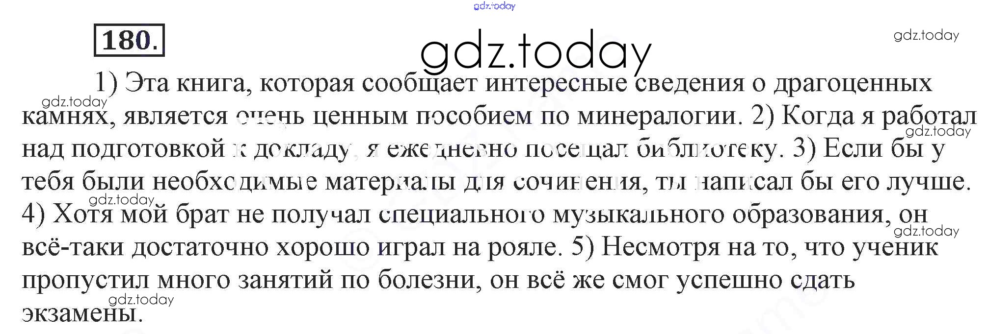 На страницах сайта gdz.today вы найдете учебный и вспомогательный материал, направленный на улучшения знаний школьной программы. ГДЗ - онлайн мир знаний Решение. Упражнения 180 Учебнику по Русскому языку для 9 класса Бархударов, Крючков Просвещение, Просвещение 2011, 2019