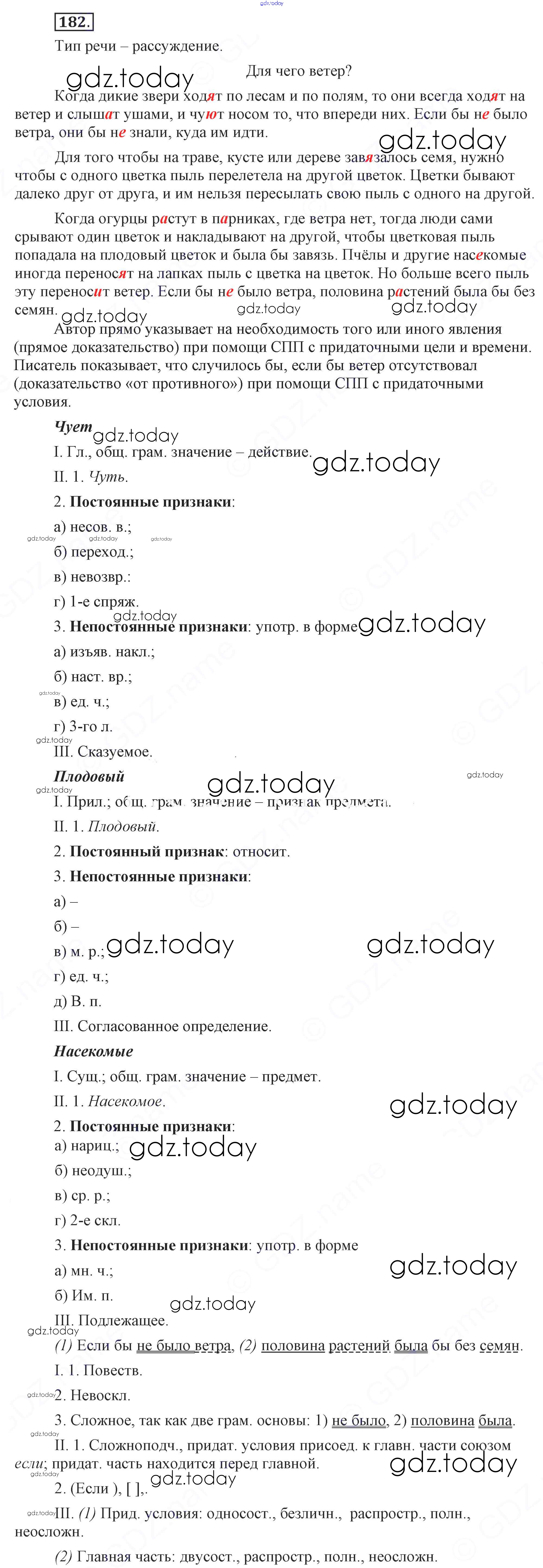 На страницах сайта gdz.today вы найдете учебный и вспомогательный материал, направленный на улучшения знаний школьной программы. ГДЗ - онлайн мир знаний Решение. Упражнения 182 Учебнику по Русскому языку для 9 класса Бархударов, Крючков Просвещение, Просвещение 2011, 2019