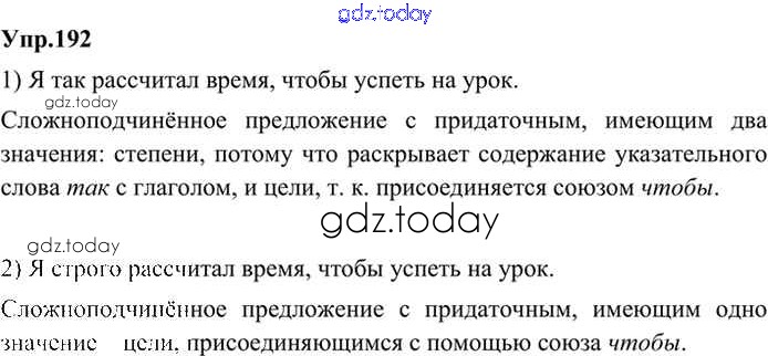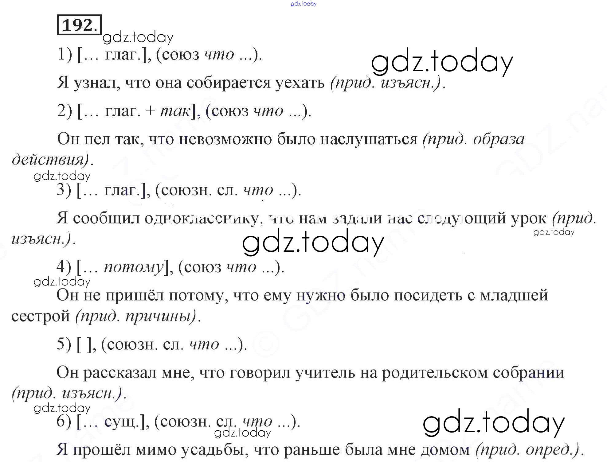 На страницах сайта gdz.today вы найдете учебный и вспомогательный материал, направленный на улучшения знаний школьной программы. ГДЗ - онлайн мир знаний Решение. Упражнения 192 Учебнику по Русскому языку для 9 класса Бархударов, Крючков Просвещение, Просвещение 2011, 2019