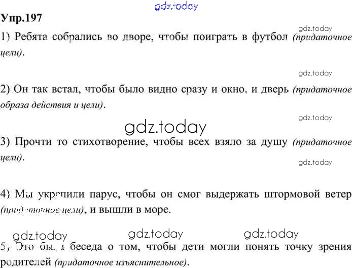 На страницах сайта gdz.today вы найдете учебный и вспомогательный материал, направленный на улучшения знаний школьной программы. ГДЗ - онлайн мир знаний Решение. Упражнения 197 Учебнику по Русскому языку для 9 класса Бархударов, Крючков Просвещение, Просвещение 2011, 2019