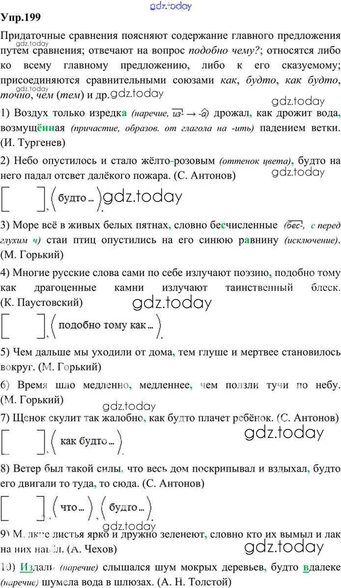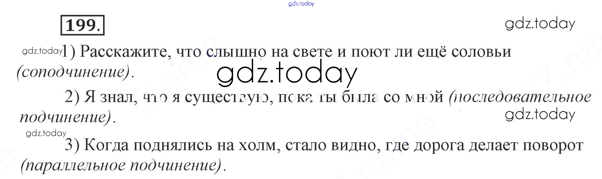 На страницах сайта gdz.today вы найдете учебный и вспомогательный материал, направленный на улучшения знаний школьной программы. ГДЗ - онлайн мир знаний Решение. Упражнения 199 Учебнику по Русскому языку для 9 класса Бархударов, Крючков Просвещение, Просвещение 2011, 2019