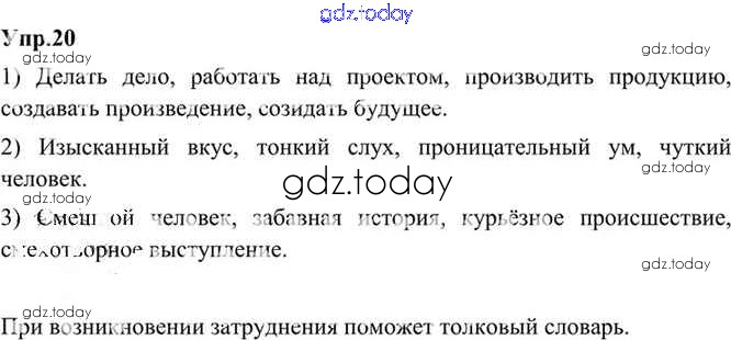 На страницах сайта gdz.today вы найдете учебный и вспомогательный материал, направленный на улучшения знаний школьной программы. ГДЗ - онлайн мир знаний Решение. Упражнения 20 Учебнику по Русскому языку для 9 класса Бархударов, Крючков Просвещение, Просвещение 2011, 2019