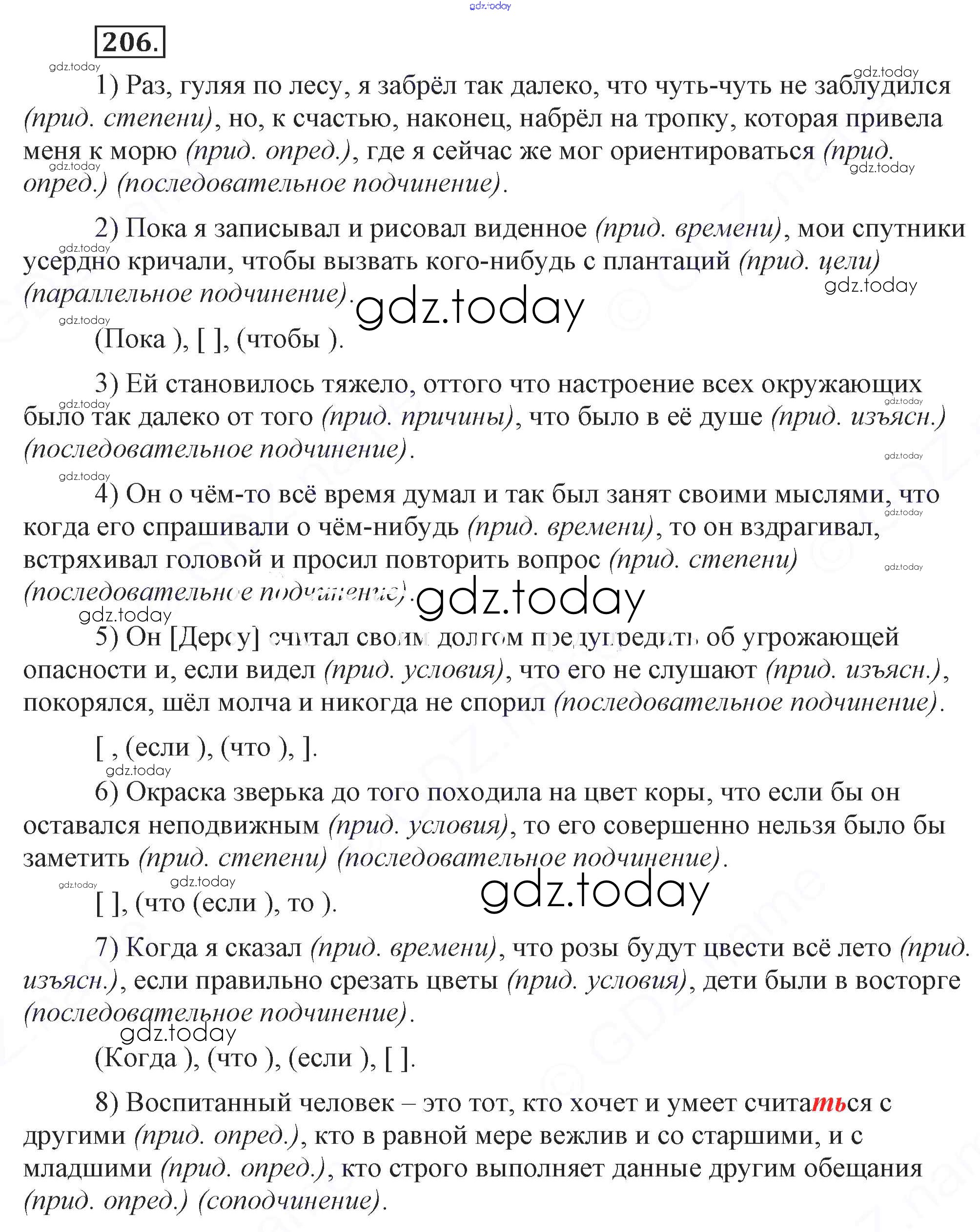 На страницах сайта gdz.today вы найдете учебный и вспомогательный материал, направленный на улучшения знаний школьной программы. ГДЗ - онлайн мир знаний Решение. Упражнения 206 Учебнику по Русскому языку для 9 класса Бархударов, Крючков Просвещение, Просвещение 2011, 2019