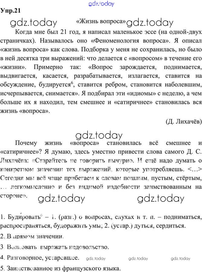 На страницах сайта gdz.today вы найдете учебный и вспомогательный материал, направленный на улучшения знаний школьной программы. ГДЗ - онлайн мир знаний Решение. Упражнения 21 Учебнику по Русскому языку для 9 класса Бархударов, Крючков Просвещение, Просвещение 2011, 2019