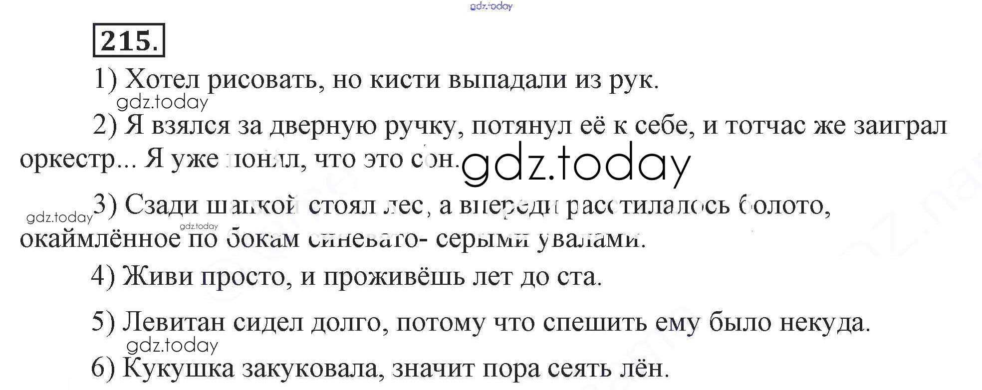 На страницах сайта gdz.today вы найдете учебный и вспомогательный материал, направленный на улучшения знаний школьной программы. ГДЗ - онлайн мир знаний Решение. Упражнения 215 Учебнику по Русскому языку для 9 класса Бархударов, Крючков Просвещение, Просвещение 2011, 2019
