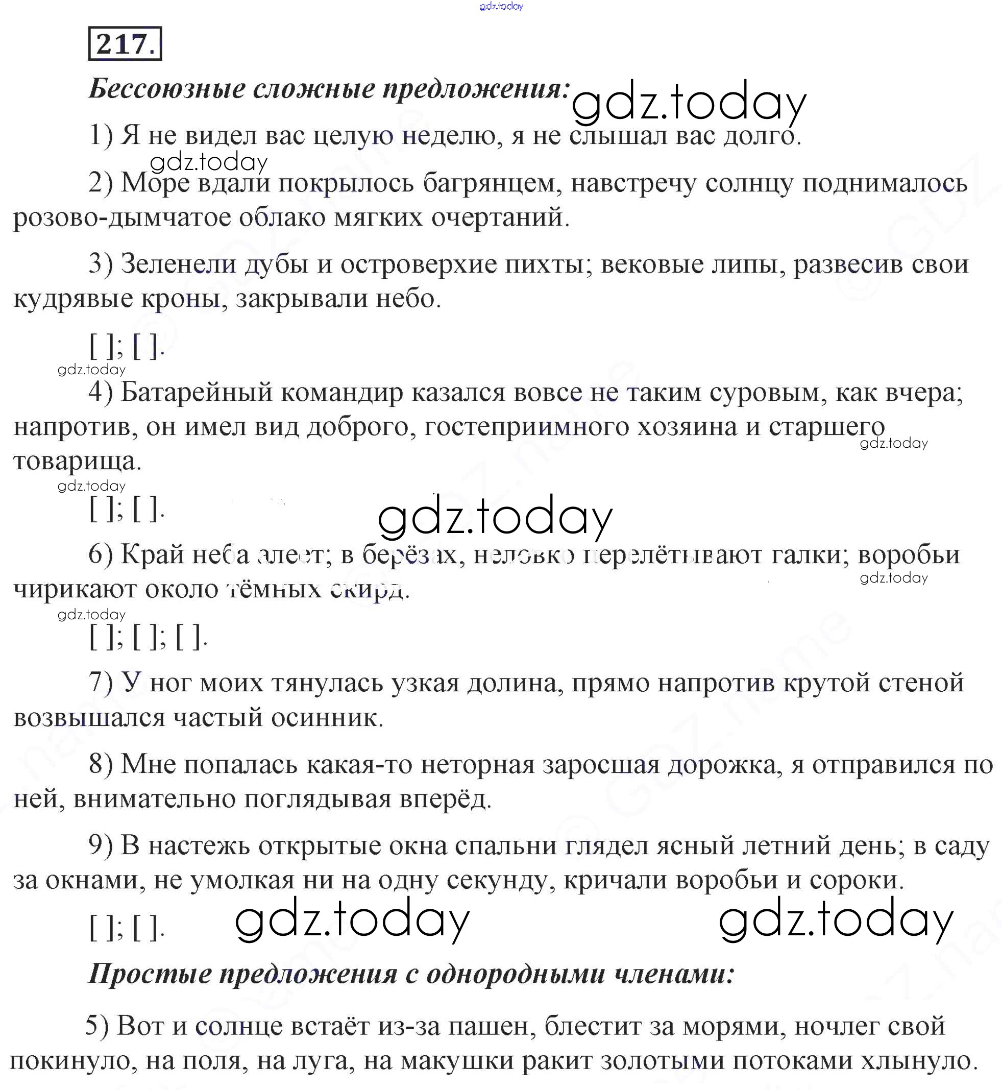 На страницах сайта gdz.today вы найдете учебный и вспомогательный материал, направленный на улучшения знаний школьной программы. ГДЗ - онлайн мир знаний Решение. Упражнения 217 Учебнику по Русскому языку для 9 класса Бархударов, Крючков Просвещение, Просвещение 2011, 2019