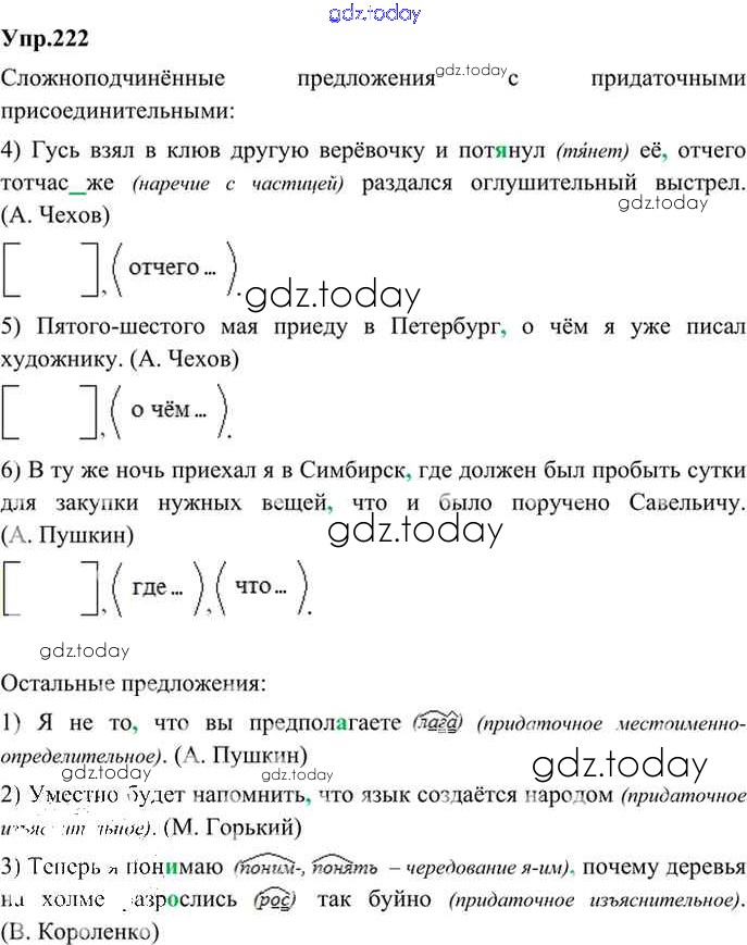 На страницах сайта gdz.today вы найдете учебный и вспомогательный материал, направленный на улучшения знаний школьной программы. ГДЗ - онлайн мир знаний Решение. Упражнения 222 Учебнику по Русскому языку для 9 класса Бархударов, Крючков Просвещение, Просвещение 2011, 2019
