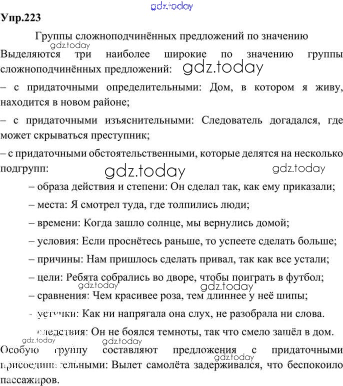 На страницах сайта gdz.today вы найдете учебный и вспомогательный материал, направленный на улучшения знаний школьной программы. ГДЗ - онлайн мир знаний Решение. Упражнения 223 Учебнику по Русскому языку для 9 класса Бархударов, Крючков Просвещение, Просвещение 2011, 2019