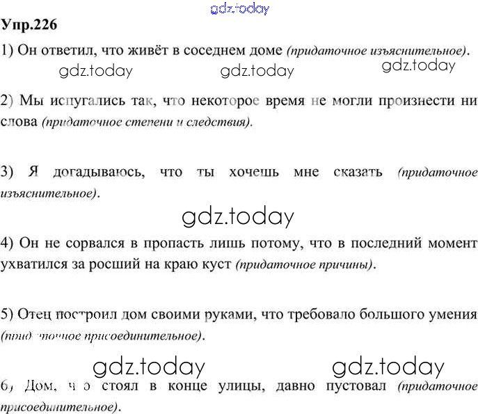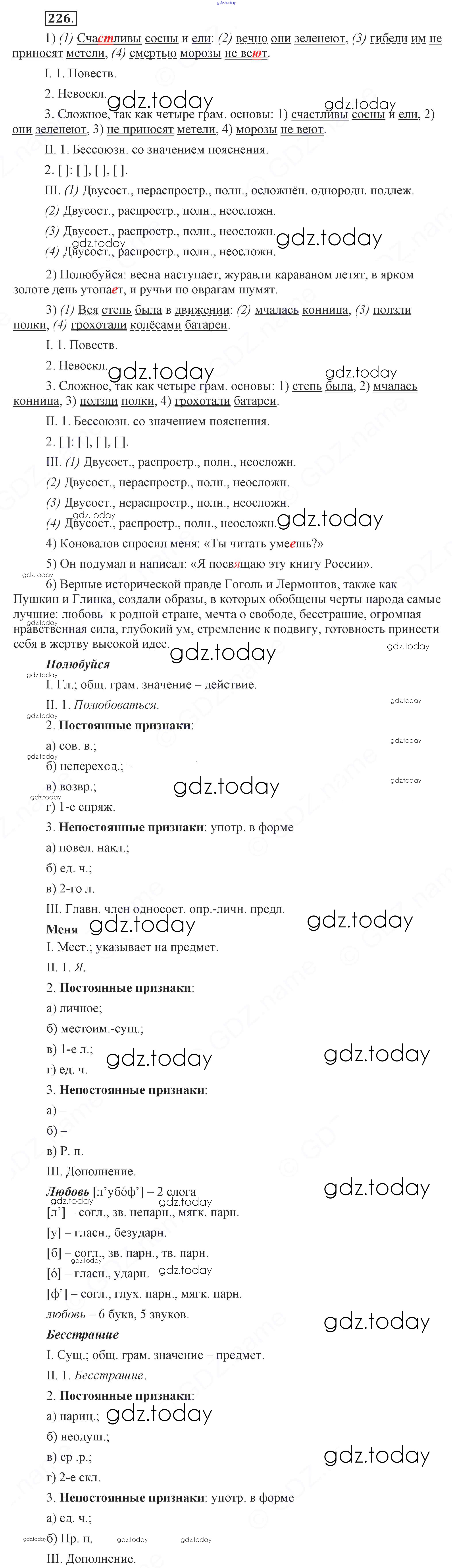 На страницах сайта gdz.today вы найдете учебный и вспомогательный материал, направленный на улучшения знаний школьной программы. ГДЗ - онлайн мир знаний Решение. Упражнения 226 Учебнику по Русскому языку для 9 класса Бархударов, Крючков Просвещение, Просвещение 2011, 2019
