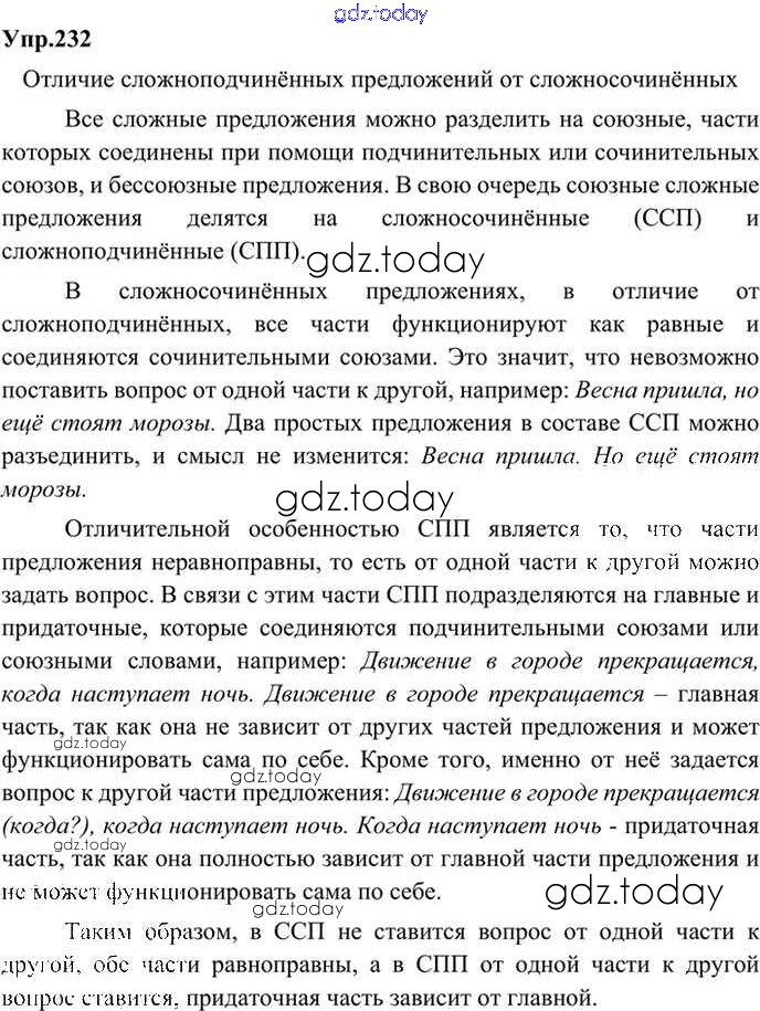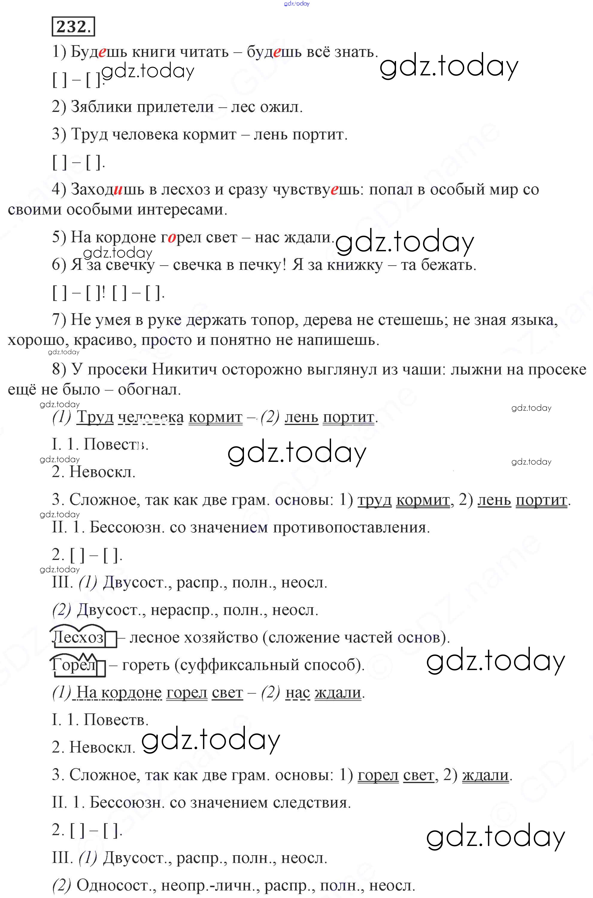 На страницах сайта gdz.today вы найдете учебный и вспомогательный материал, направленный на улучшения знаний школьной программы. ГДЗ - онлайн мир знаний Решение. Упражнения 232 Учебнику по Русскому языку для 9 класса Бархударов, Крючков Просвещение, Просвещение 2011, 2019