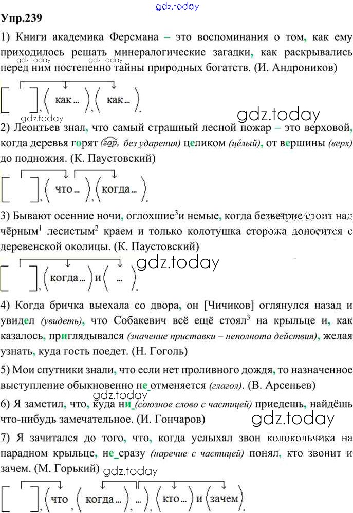 На страницах сайта gdz.today вы найдете учебный и вспомогательный материал, направленный на улучшения знаний школьной программы. ГДЗ - онлайн мир знаний Решение. Упражнения 239 Учебнику по Русскому языку для 9 класса Бархударов, Крючков Просвещение, Просвещение 2011, 2019